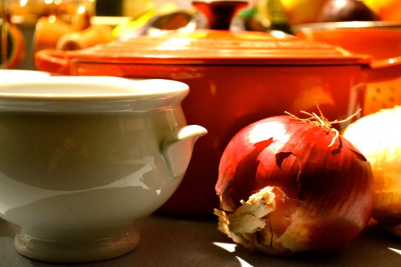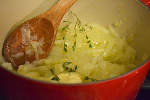 After a weekend of attempting to install our new gas range, only to discover that the existing gas line was not only ancient and the wrong size for the updated appliance, but was not up to code, I received a text from Miek announcing a successful install. A giant sigh of relief. All I could think about was this recipe highlighted by Emily from Cupcakes and Cashmere, some arugula salad, an apple/pear/raspberry pie and some aged gouda. Once I got home, I lost myself in chopping, stirring, peeling. Melted cheese is a lot cheaper than therapy.